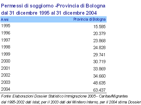 | Nostra sintesi Fonte: Caritas/Migrantes - Dossier Statistico Immigrazione 2005 -Contesti Regionali - Emilia Romagna | |||