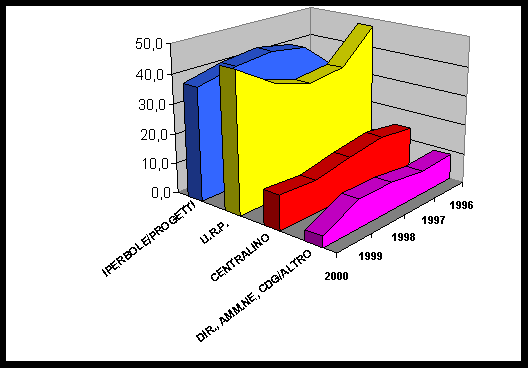 (*) Il CDC "Direzione, amministrazione, cdg/altro" svolge anche una attività produttiva quantizzabile in circa 273 ml. per il 1998, per il 1999 307 ml e 121 ml per il 2000.