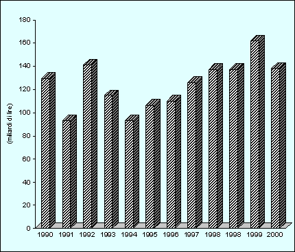Ammontare delle liquidazioni in conto capitale dal 1990 al 2000