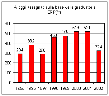 (*) Dal 2000 ai contributi del Comune si sono aggiunti quelli della Regione (**) comprende emergenze abitative